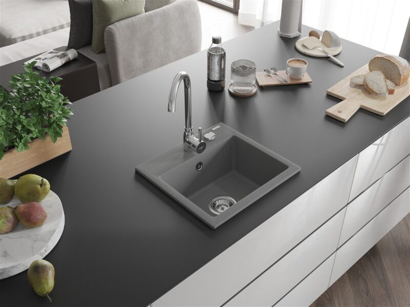MEXEN/S MEXEN/S – Milo granitový drez 1-miska vrátane batérie Telma, šedá 6505-71-670200-00