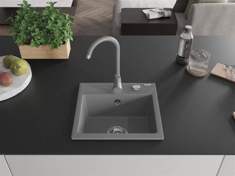 MEXEN/S MEXEN/S – Milo granitový drez 1-miska vrátane batérie Telma, šedá 6505-71-670200-71