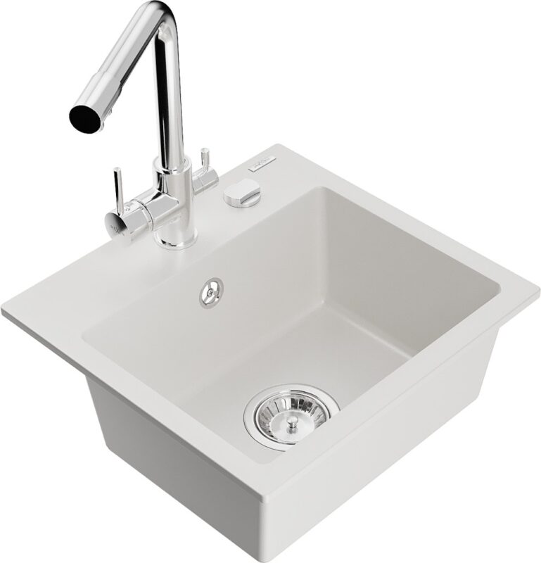 MEXEN/S MEXEN/S – Milo granitový drez vrátane batérie Duero, biela 6505-20-671600-00