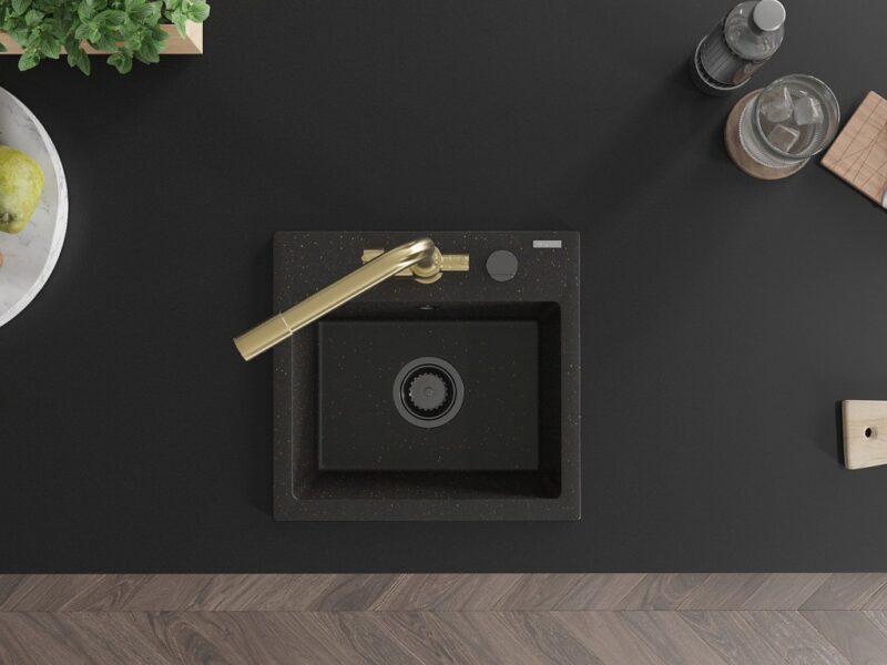 MEXEN/S MEXEN/S – Milo granitový drez vrátane batérie Duero, čierna/zlatá metalik 6505-75-671600-50-B