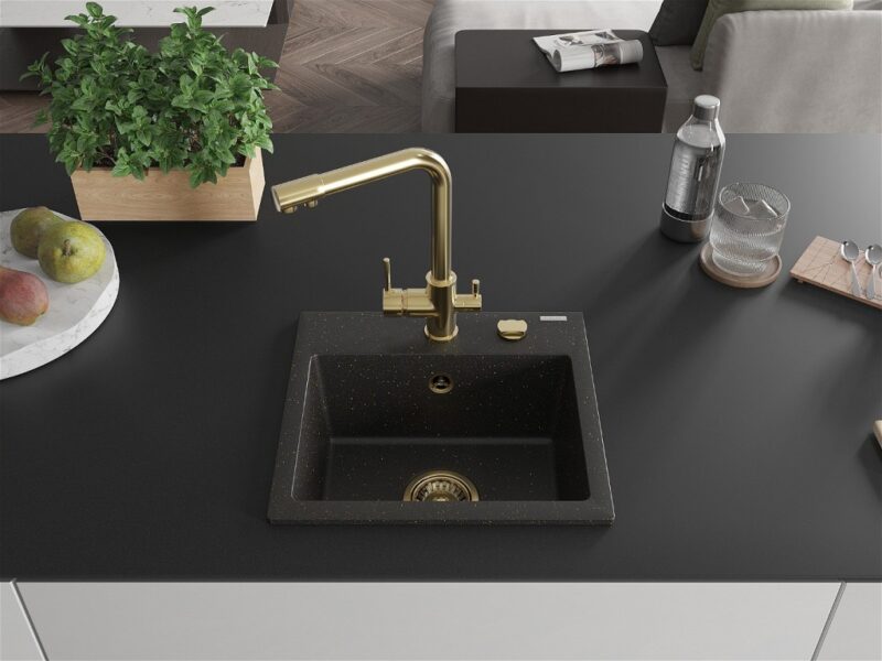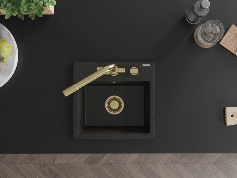 MEXEN/S MEXEN/S – Milo granitový drez vrátane batérie Duero, čierna/zlatá metalik 6505-75-671600-50
