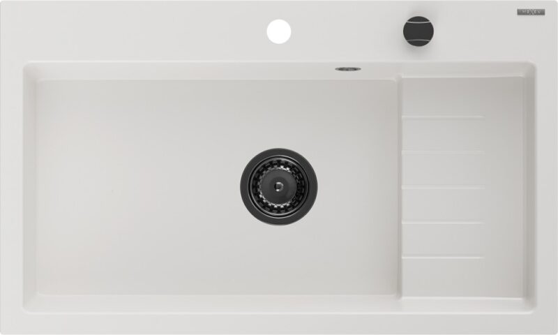 MEXEN/S MEXEN/S – Omar granitový drez 800 x 480 mm, biela, čierny sifón 6520801005-20-B