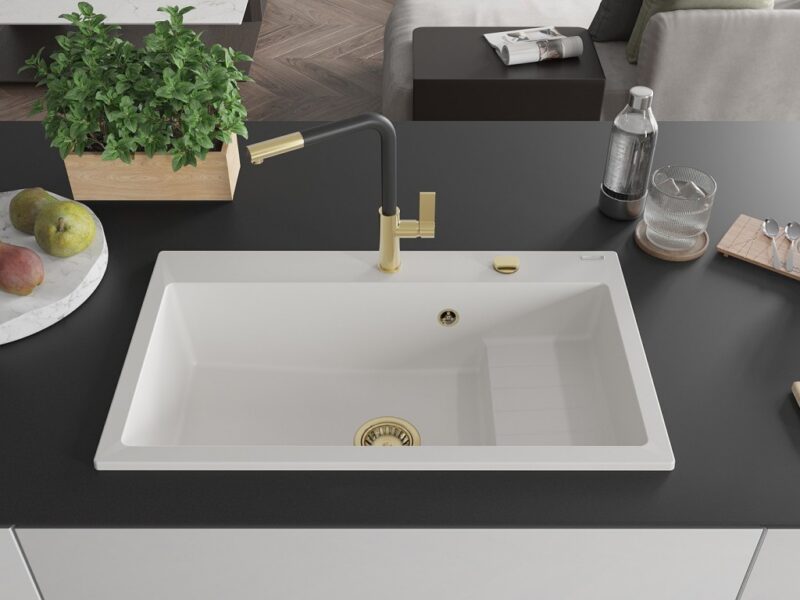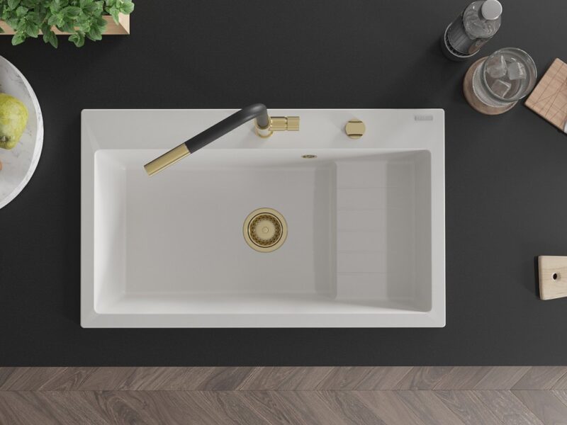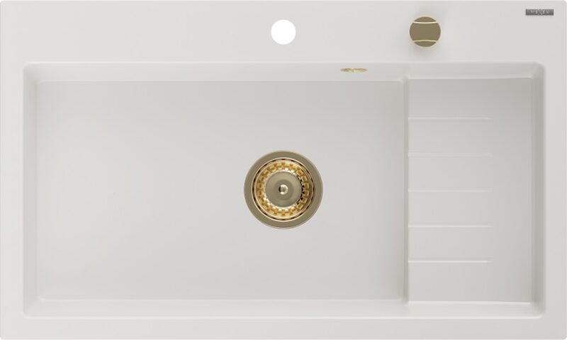 MEXEN/S MEXEN/S – Omar granitový drez 800 x 480 mm, biela, zlatý sifón 6520801005-20-G