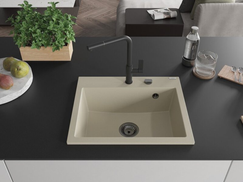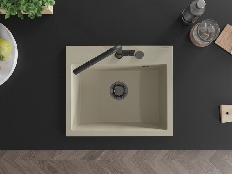 MEXEN/S MEXEN/S – Oscar granitový drez 580 x 490 mm, béžová, čierny sifón 6519581000-69-B