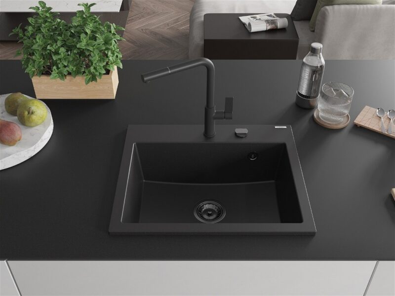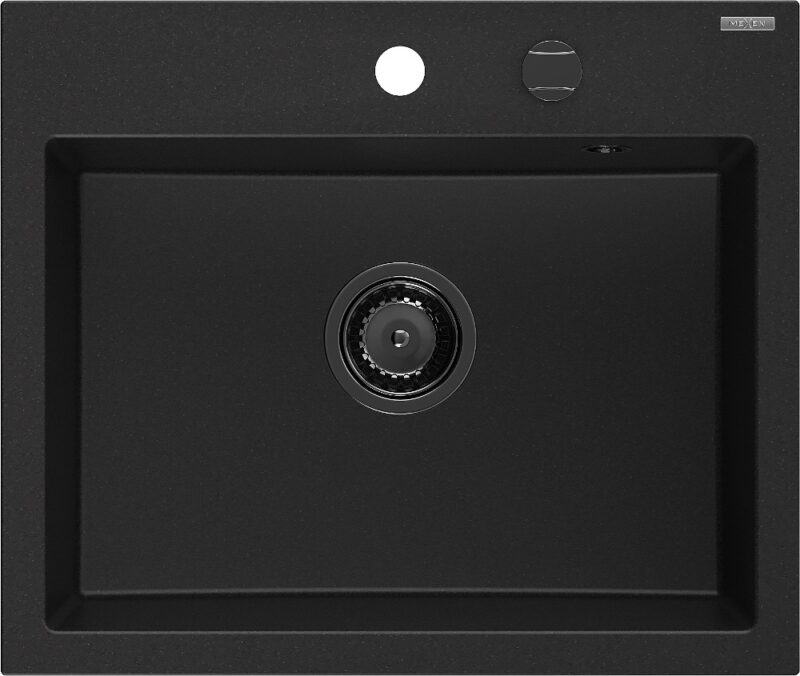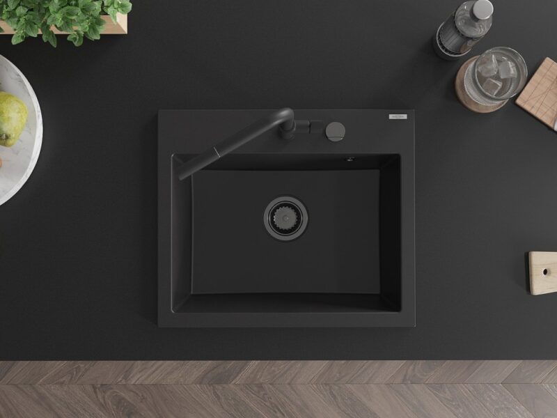 MEXEN/S MEXEN/S – Oscar granitový drez 580 x 490 mm, čierna, čierny sifón 6519581000-77-B