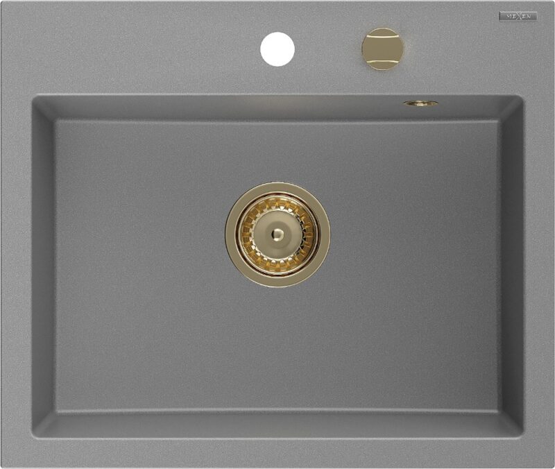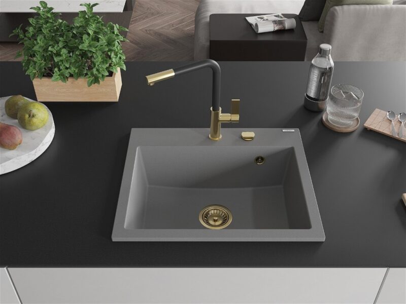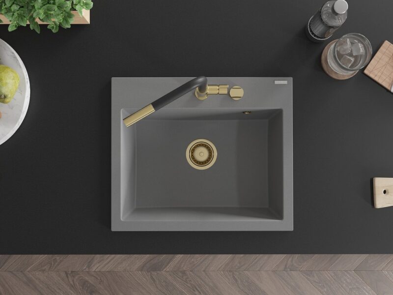 MEXEN/S MEXEN/S – Oscar granitový drez 580 x 490 mm, sivá, zlatý sifón 6519581000-71-G