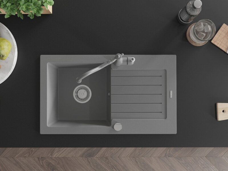 MEXEN/S MEXEN/S – Pablo granitový drez 1-miska s odkvapkávačom vrátane batérie Carla, šedá 6510-71-670700-71
