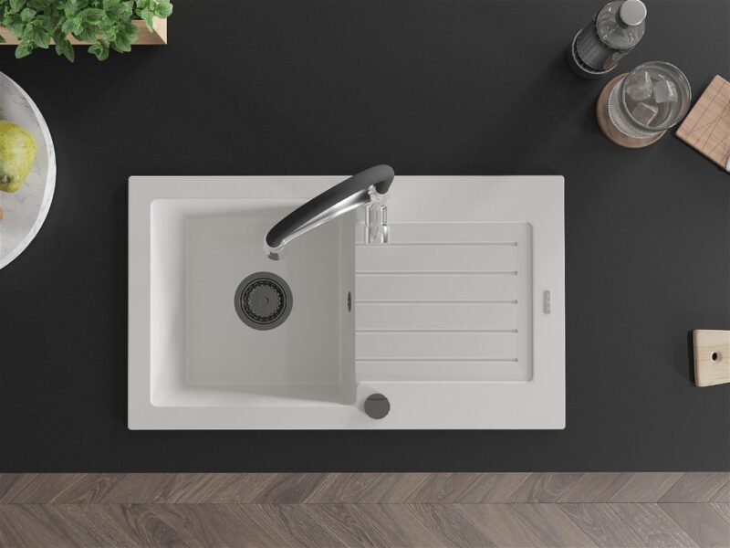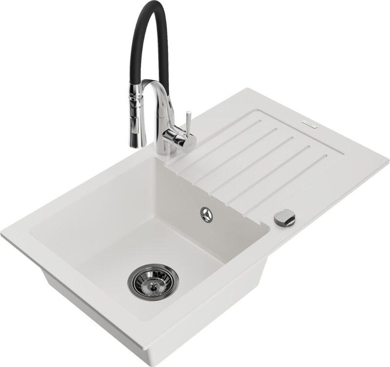 MEXEN/S MEXEN/S – Pablo granitový drez 1 s odkvapkávačom vrátane batérie Aster, biela 6510-20-73450-07-B