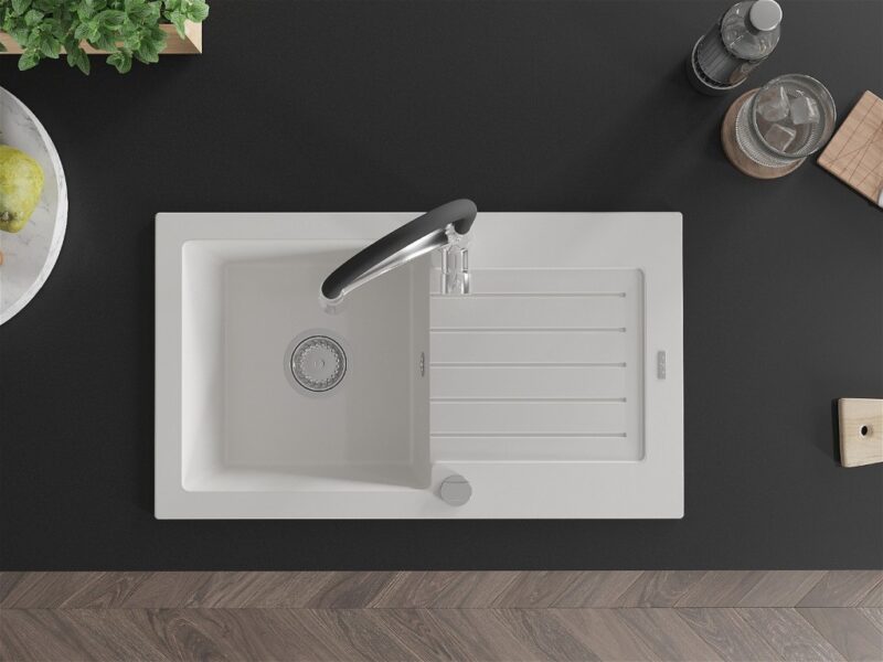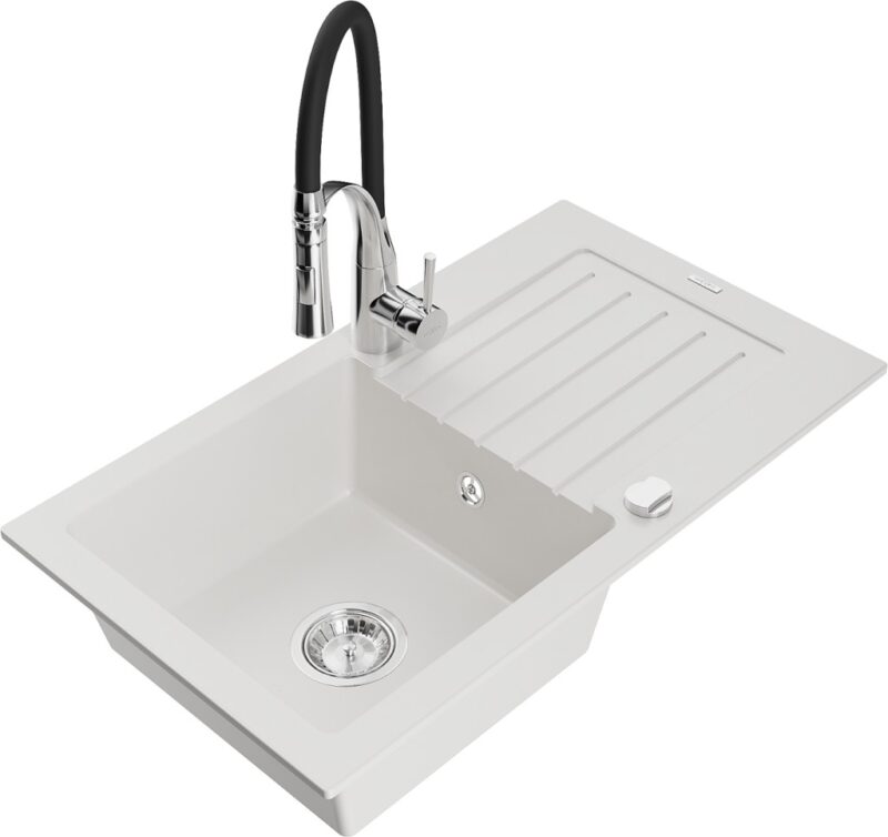 MEXEN/S MEXEN/S – Pablo granitový drez 1 s odkvapkávačom vrátane batérie Aster, biela 6510-20-73450-07