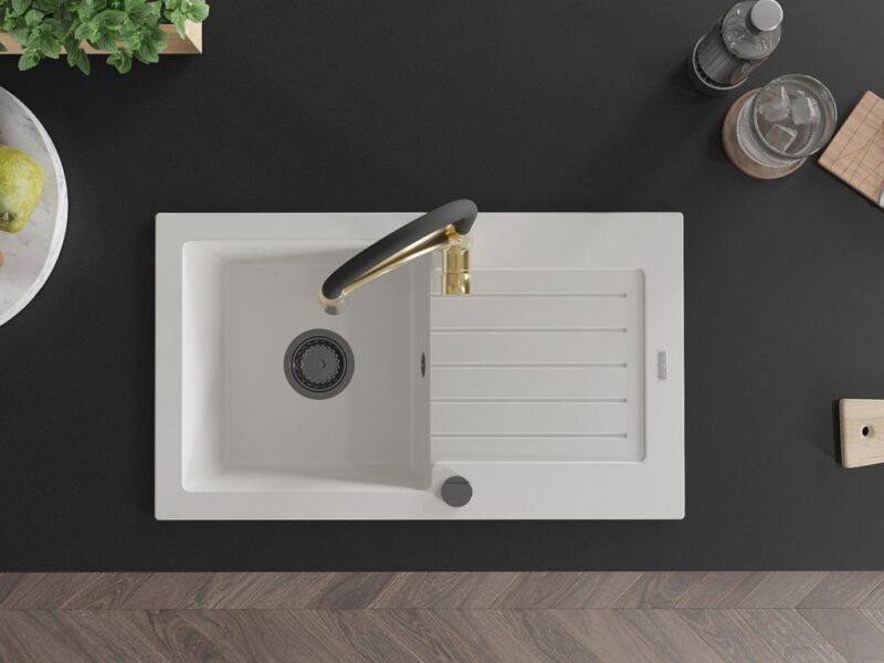 MEXEN/S MEXEN/S – Pablo granitový drez 1 s odkvapkávačom vrátane batérie Aster, biela 6510-20-73450-57-B