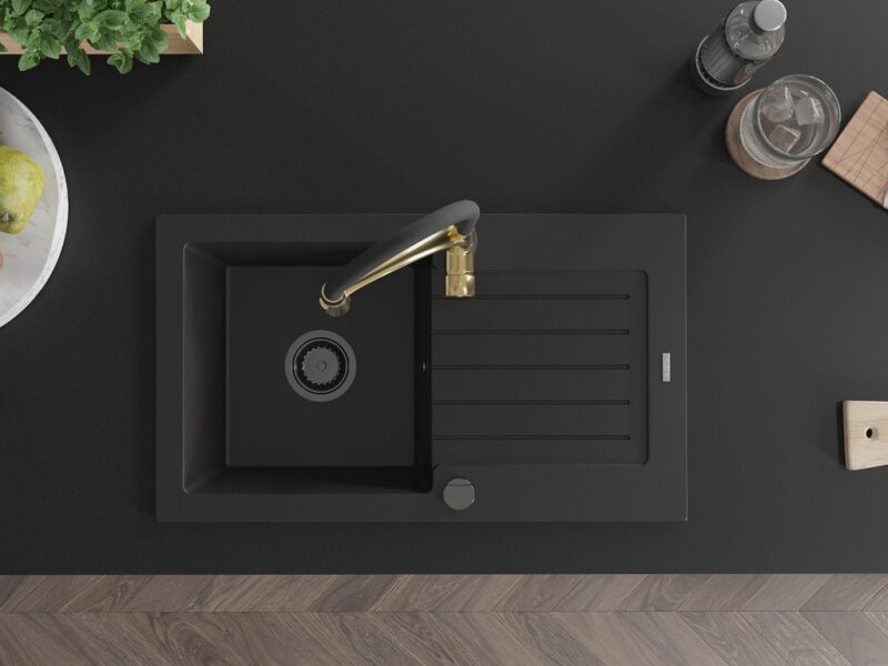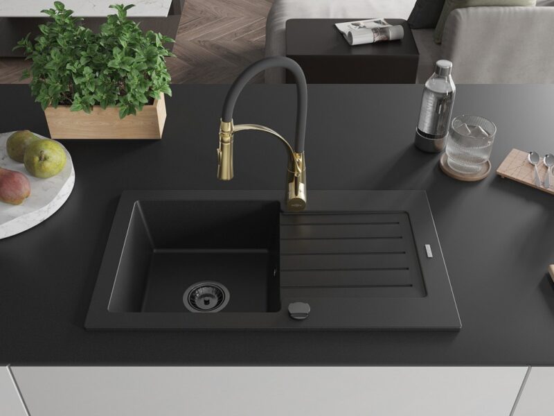 MEXEN/S MEXEN/S – Pablo granitový drez 1 s odkvapkávačom vrátane batérie Aster, čierna 6510-77-73450-57-B