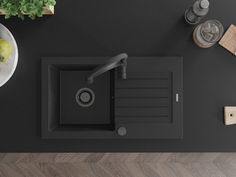 MEXEN/S MEXEN/S – Pablo granitový drez 1 s odkvapkávačom vrátane batérie Aster, čierna 6510-77-73450-70-B