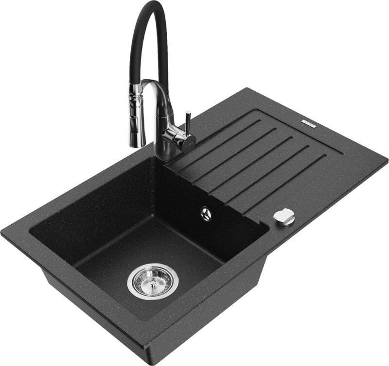 MEXEN/S MEXEN/S – Pablo granitový drez 1 s odkvapkávačom vrátane batérie Aster, čierna/strieborná metalík 6510-73-73450-07