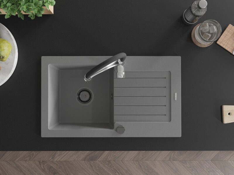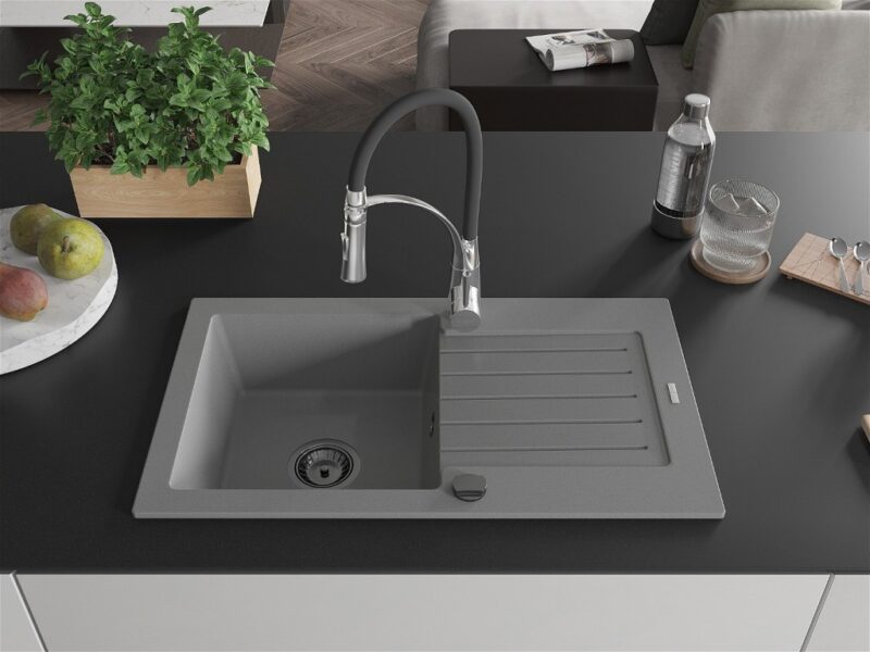 MEXEN/S MEXEN/S – Pablo granitový drez 1 s odkvapkávačom vrátane batérie Aster, šedá 6510-71-73450-07-B