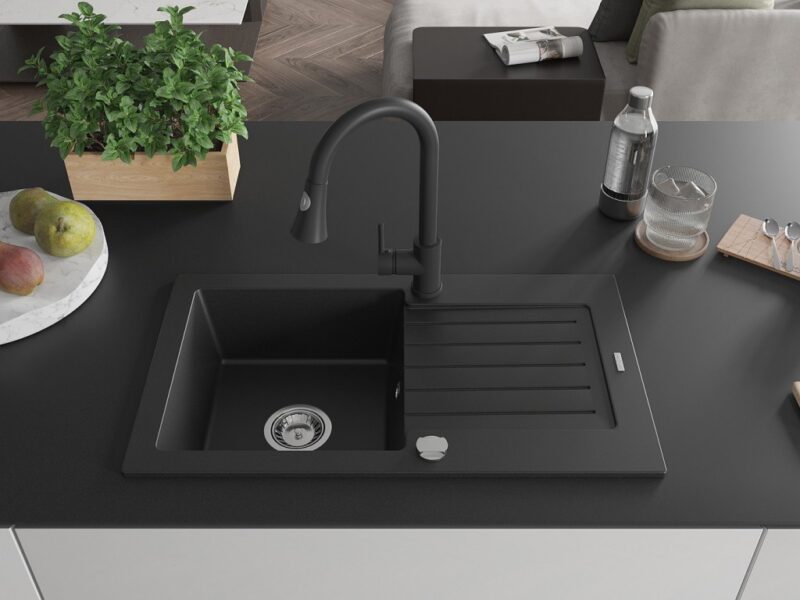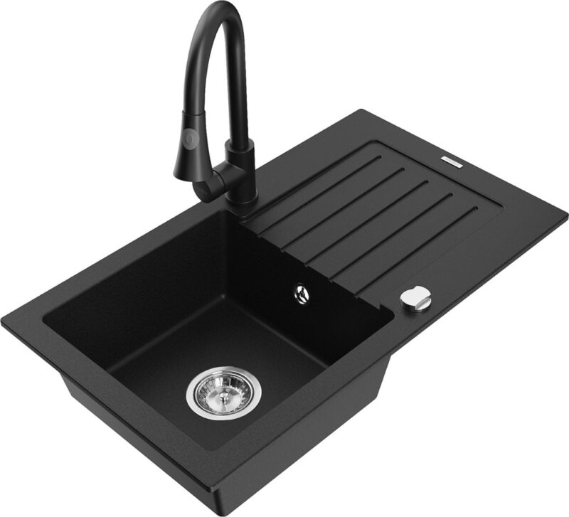 MEXEN/S MEXEN/S – Pablo granitový drez 1 s odkvapkávačom vrátane batérie Elia, čierna 6510-77-670101-70