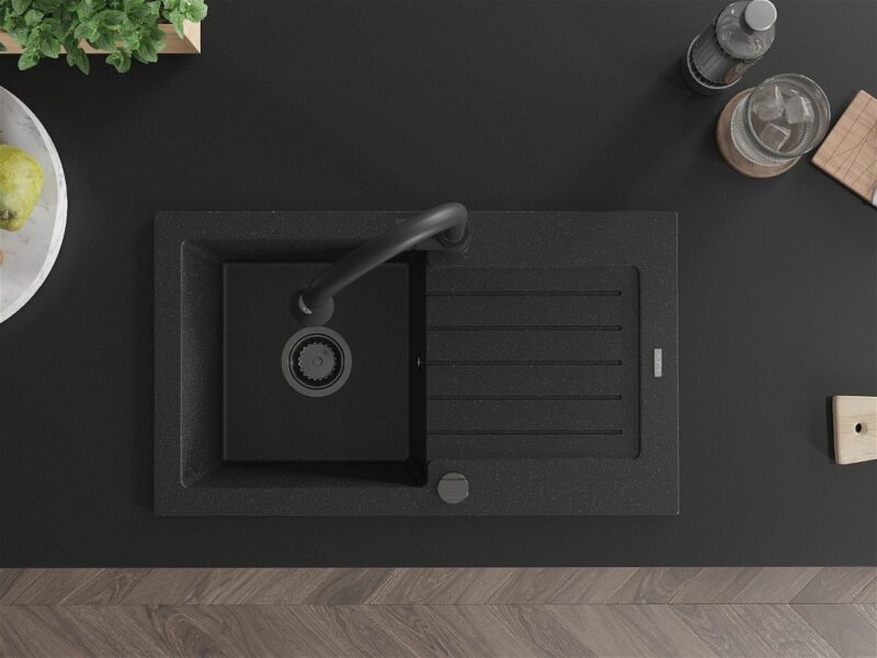 MEXEN/S MEXEN/S – Pablo granitový drez 1 s odkvapkávačom vrátane batérie Elia, čierna/strieborná metalík 6510-73-670101-70-B