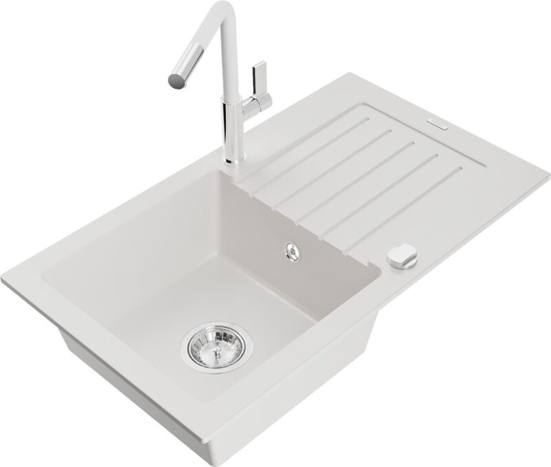 MEXEN/S MEXEN/S – Pablo granitový drez 1 s odkvapkávačom vrátane batérie Flora, biela 6510-20-670401-02