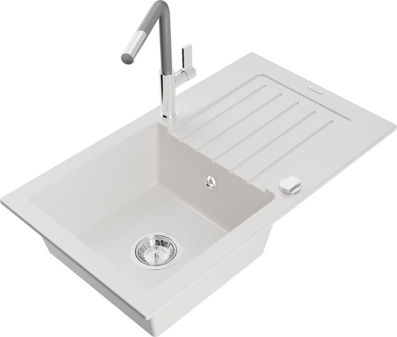 MEXEN/S MEXEN/S – Pablo granitový drez 1 s odkvapkávačom vrátane batérie Flora, biela 6510-20-670401-06