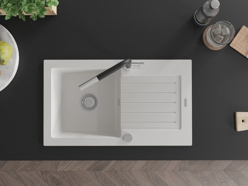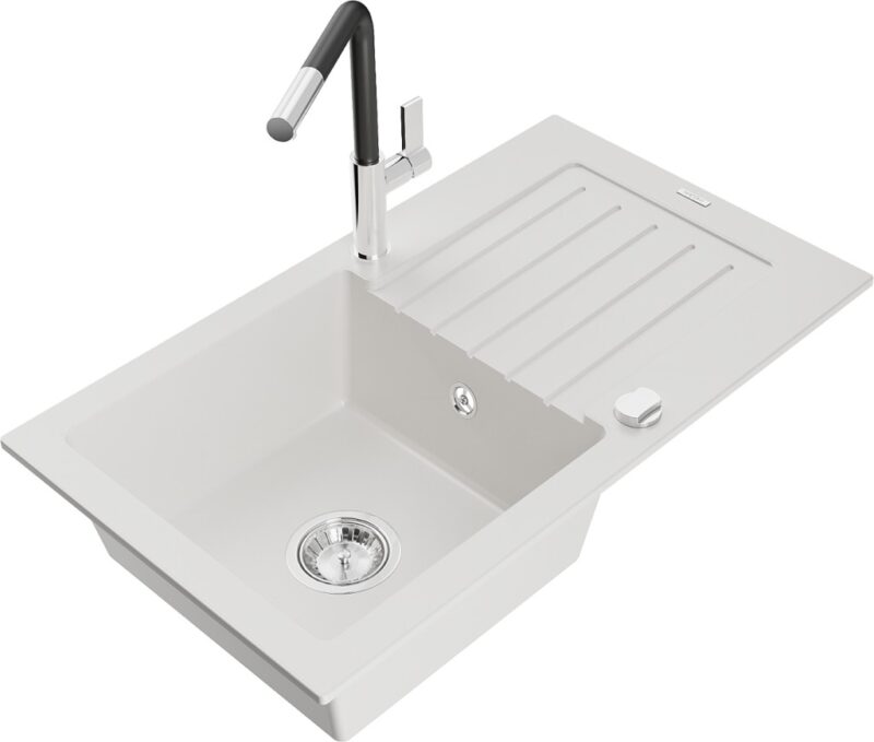 MEXEN/S MEXEN/S – Pablo granitový drez 1 s odkvapkávačom vrátane batérie Flora, biela 6510-20-670401-07