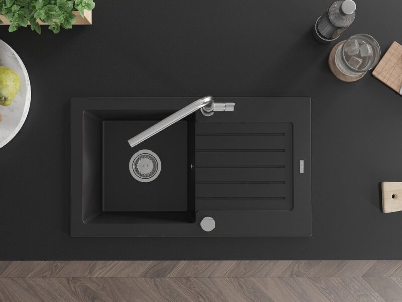 MEXEN/S MEXEN/S – Pablo granitový drez 1 s odkvapkávačom vrátane batérie Flora, čierna 6510-77-670401-00