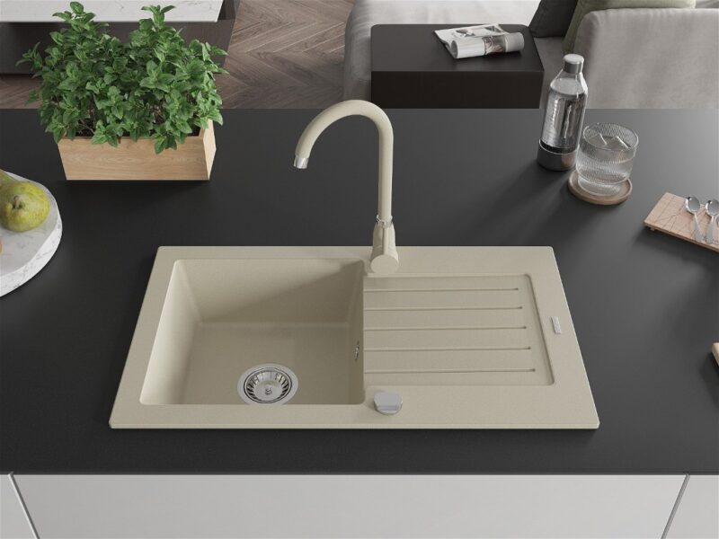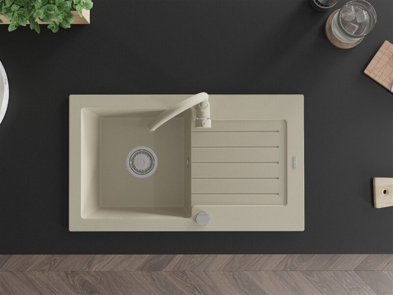 MEXEN/S MEXEN/S – Pablo granitový drez 1 s odkvapkávačom vrátane batérie Telma, béžováy 6510-69-670200-69
