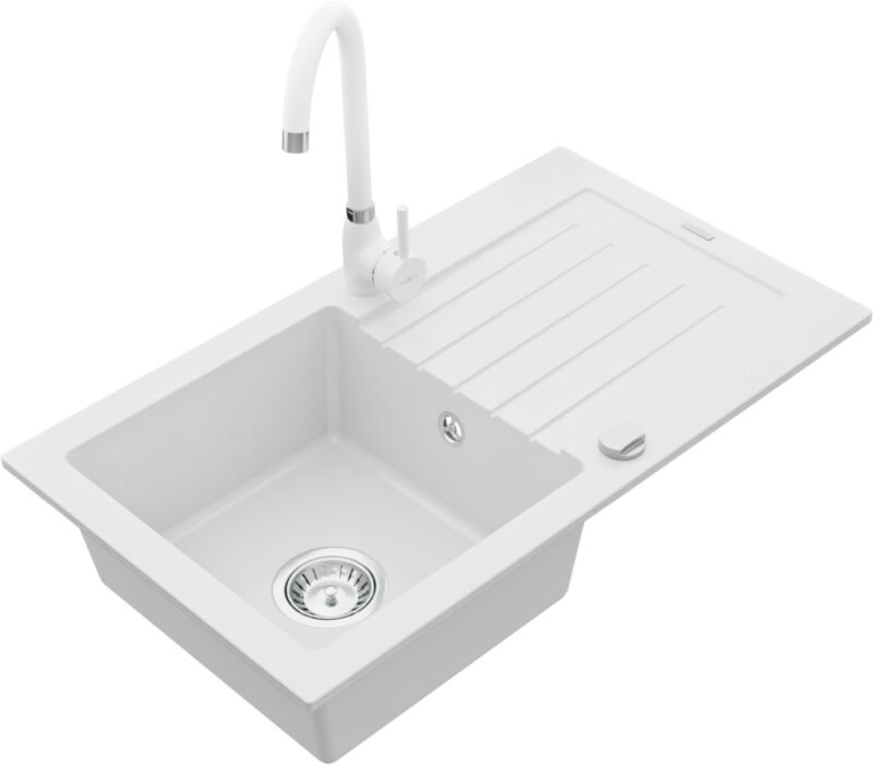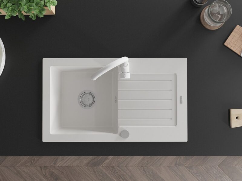 MEXEN/S MEXEN/S – Pablo granitový drez 1 s odkvapkávačom vrátane batérie Telma, biela 6510-20-670200-20