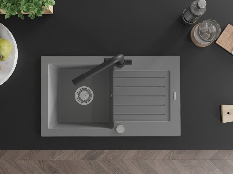 MEXEN/S MEXEN/S – Pablo granitový drez s odkvapkávačom vrátane batérie Duero, šedá 6510-71-671600-70