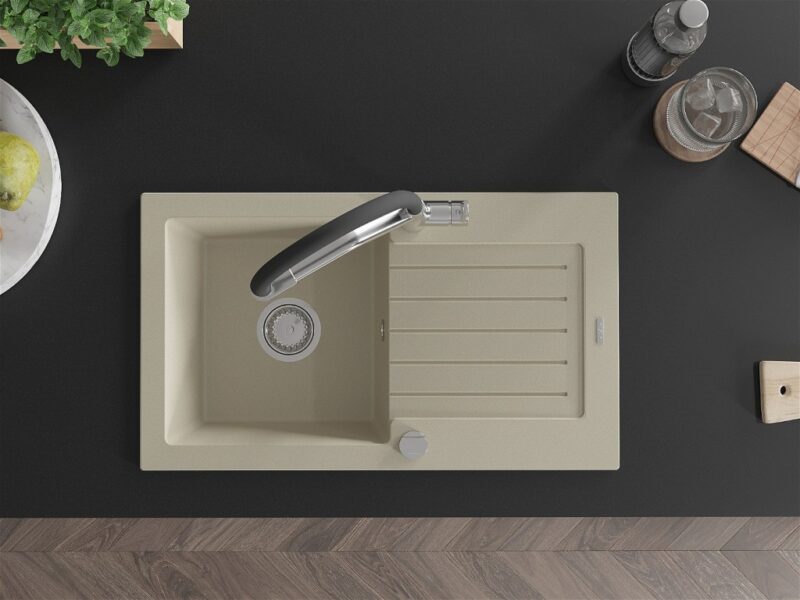 MEXEN/S MEXEN/S – Pablo granitový drez s odkvapkávačom vrátane batérie Duo, béžová 6510-69-671701-07