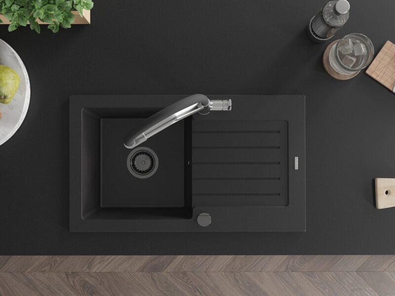 MEXEN/S MEXEN/S – Pablo granitový drez s odkvapkávačom vrátane batérie Duo, čierna 6510-77-671701-07-B