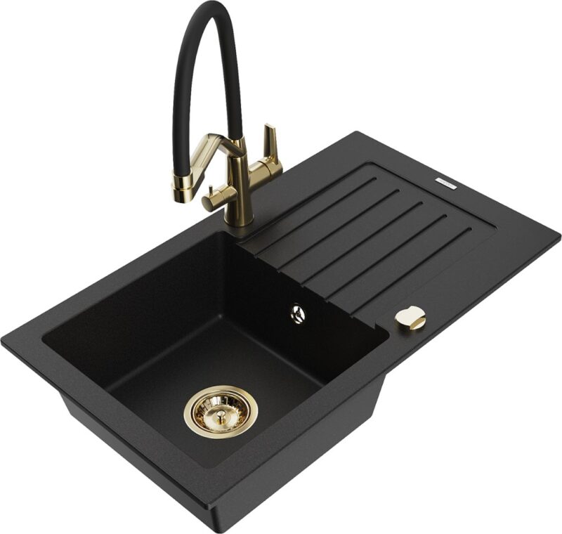 MEXEN/S MEXEN/S – Pablo granitový drez s odkvapkávačom vrátane batérie Duo, čierna 6510-77-671701-57-G