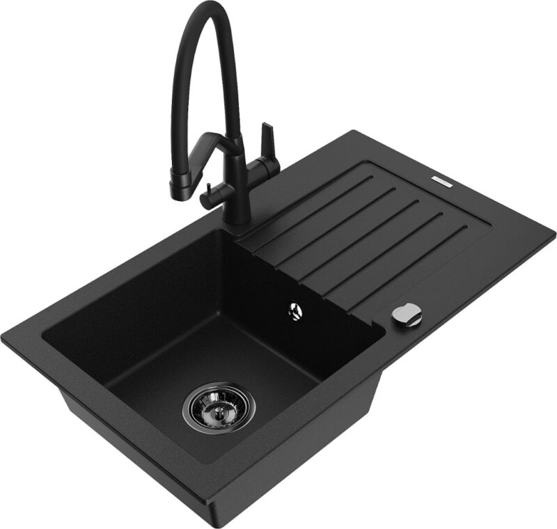 MEXEN/S MEXEN/S – Pablo granitový drez s odkvapkávačom vrátane batérie Duo, čierna 6510-77-671701-70-B
