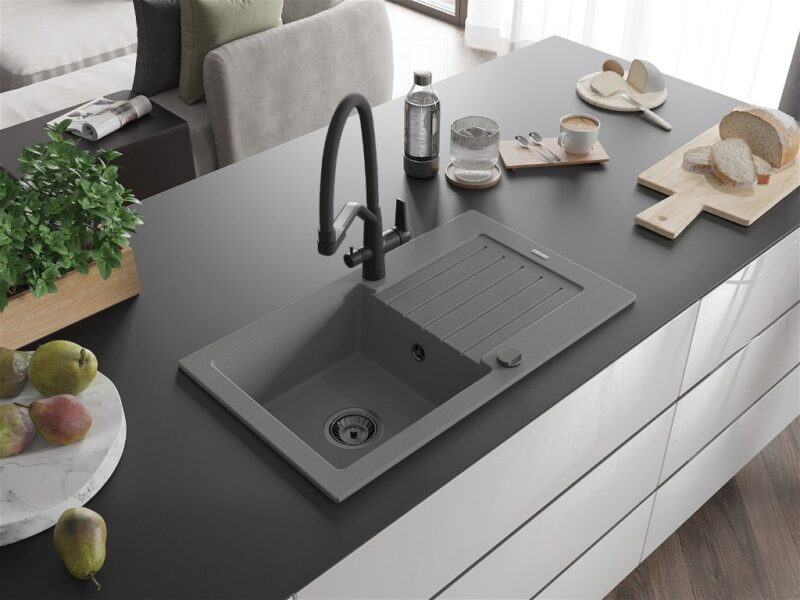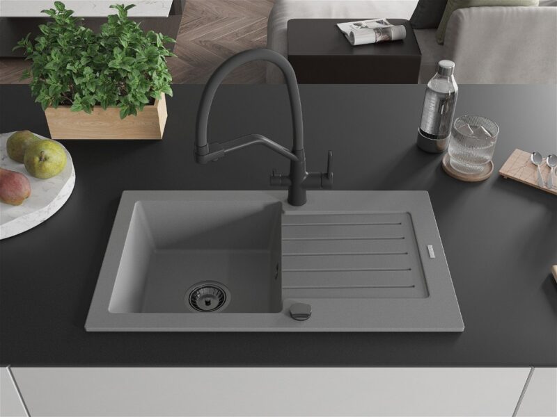 MEXEN/S MEXEN/S – Pablo granitový drez s odkvapkávačom vrátane batérie Duo, šedá 6510-71-671701-70-B