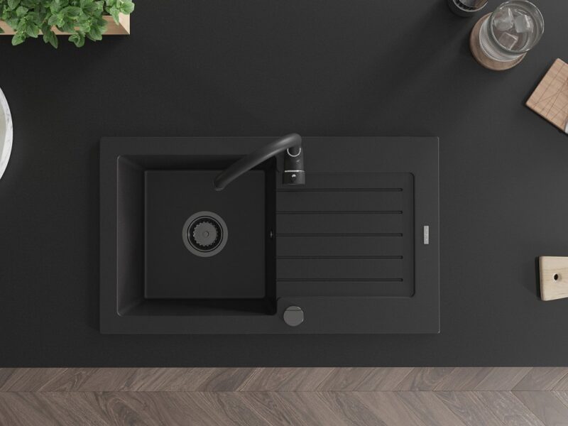 MEXEN/S MEXEN/S – Pablo granitový drez s odkvapkávačom vrátane batérie Telma, čierna 6510-77-670200-70-B