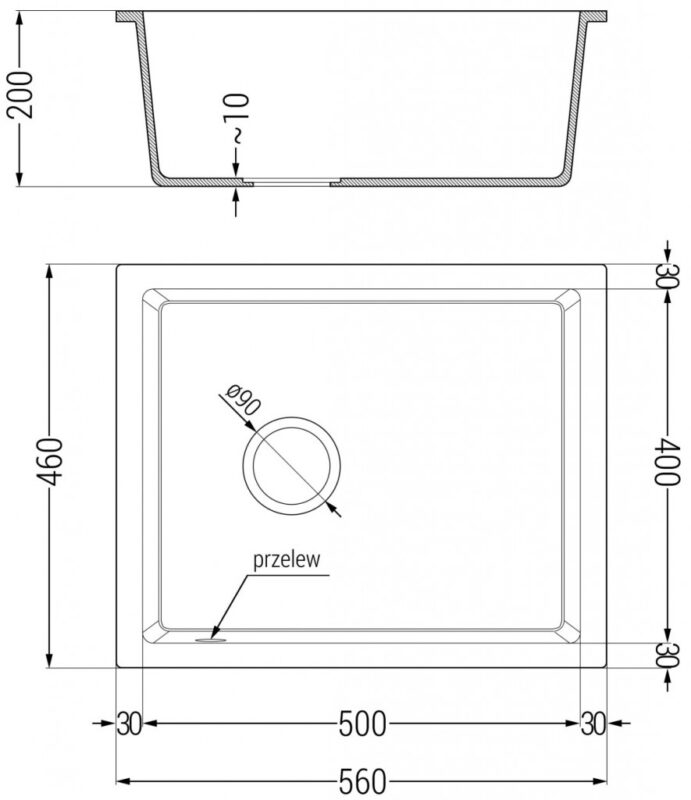 Technické dáta: Rozmer: 560 x 460 x 200 mm Hĺbka komory: 190 mm Rozmery komory: 500×400 mm Priemer odtoku: ø90 mm Typ: 1-komorový Typ: Zapustené do pracovnej dosky Materiál: žula Čierna farba Povrchová úprava sifónu: zlatá Prepadový otvor: Áno Otvor pre batériu: Nie Manuálny sifón v cene Vysoká odolnosť proti poškriabaniu a zmene farby Odolnosť proti tepelným šokom Ľahko čistiteľný povrch(GT) Ean: 5905315011893