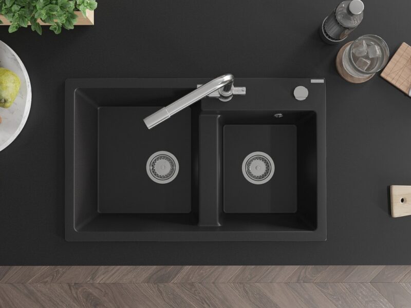 MEXEN/S MEXEN/S – Tomas granitový drez 2-bowl vrátane batérie Duero, čierna 6516-77-671600-00
