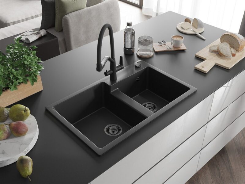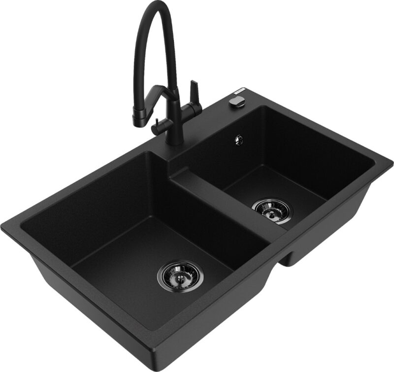 MEXEN/S MEXEN/S – Tomas granitový drez 2-bowly vrátane batérie Duo, čierna 6516-77-671701-70-B