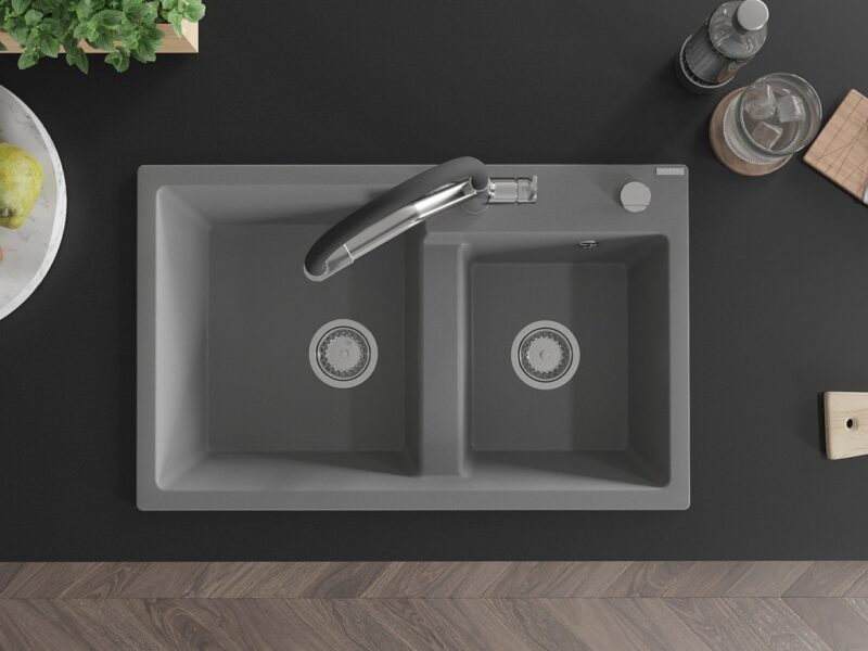 MEXEN/S MEXEN/S – Tomas granitový drez 2-bowly vrátane batérie Duo, šedá 6516-71-671701-07
