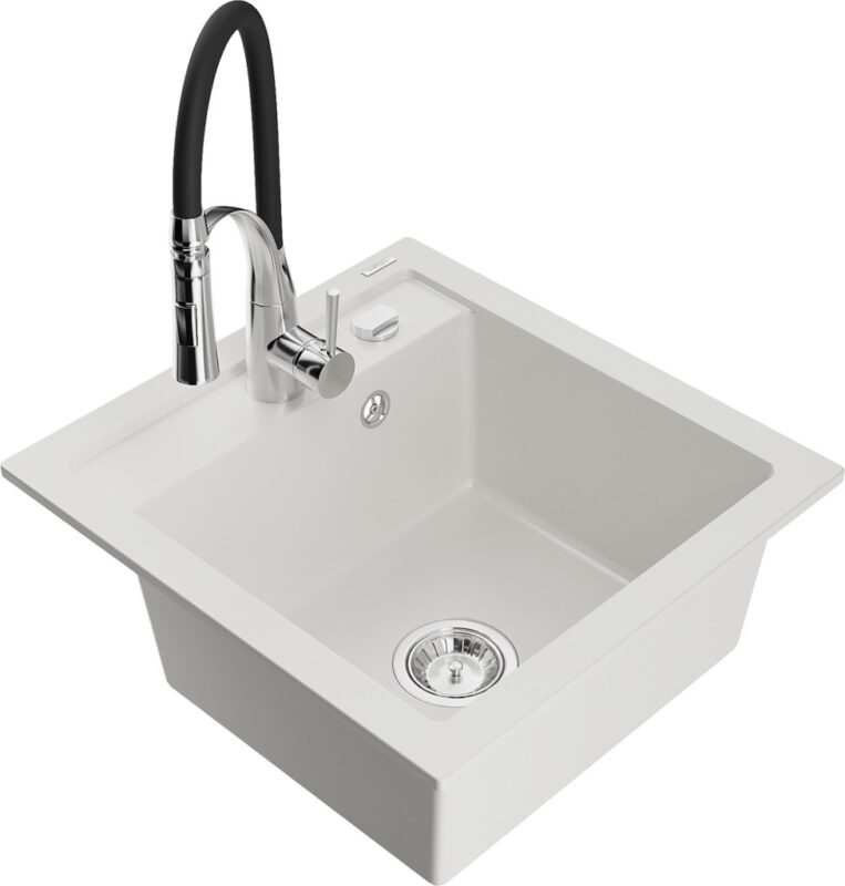 MEXEN/S MEXEN/S – Vito granitový drez 1-miska vrátane batérie Aster, biela 6503-20-73450-07