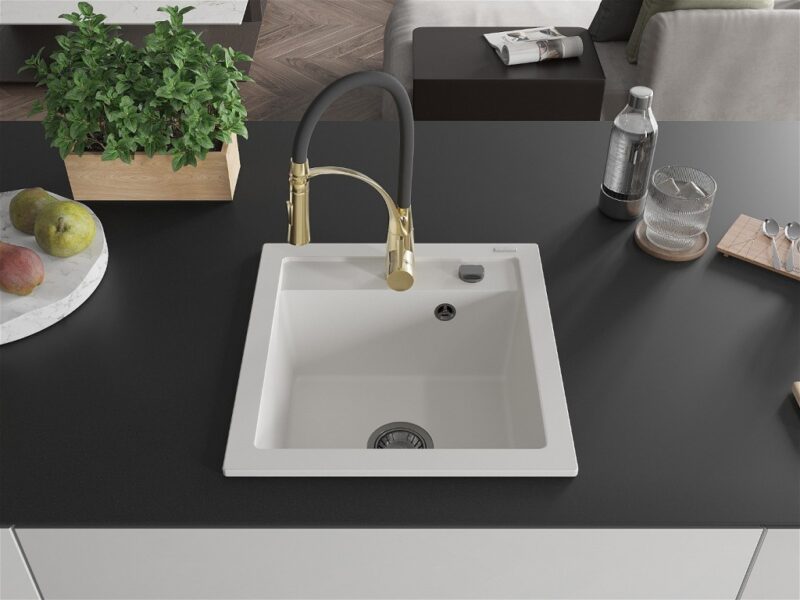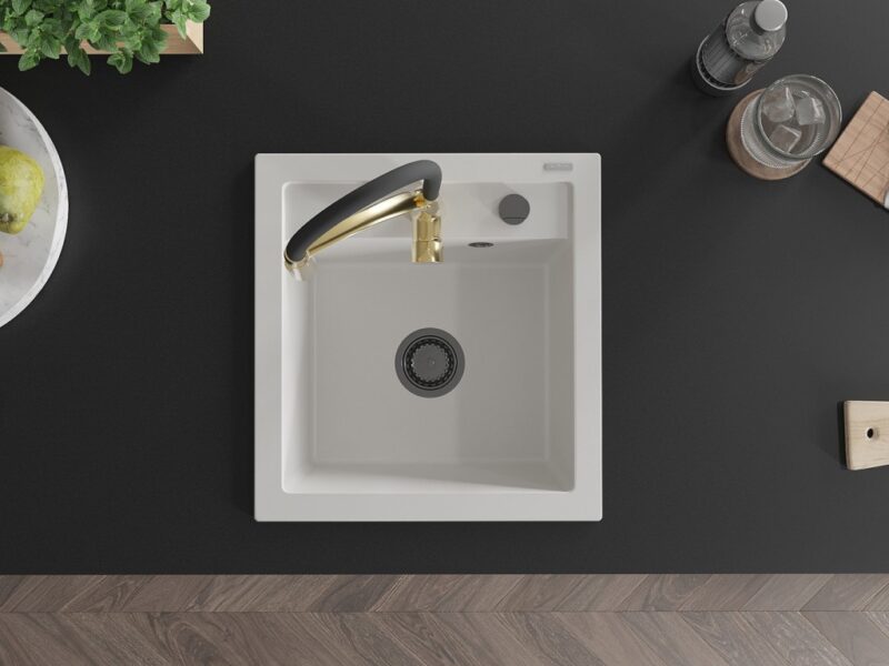 MEXEN/S MEXEN/S – Vito granitový drez 1-miska vrátane batérie Aster, biela 6503-20-73450-57-B