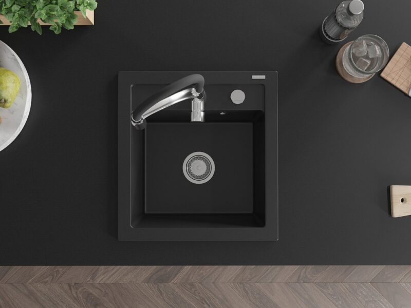 MEXEN/S MEXEN/S – Vito granitový drez 1-miska vrátane batérie Aster, čierna 6503-77-73450-07