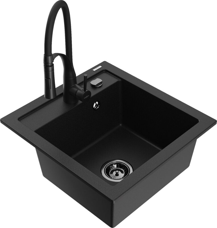 MEXEN/S MEXEN/S – Vito granitový drez 1-miska vrátane batérie Aster, čierna 6503-77-73450-70-B