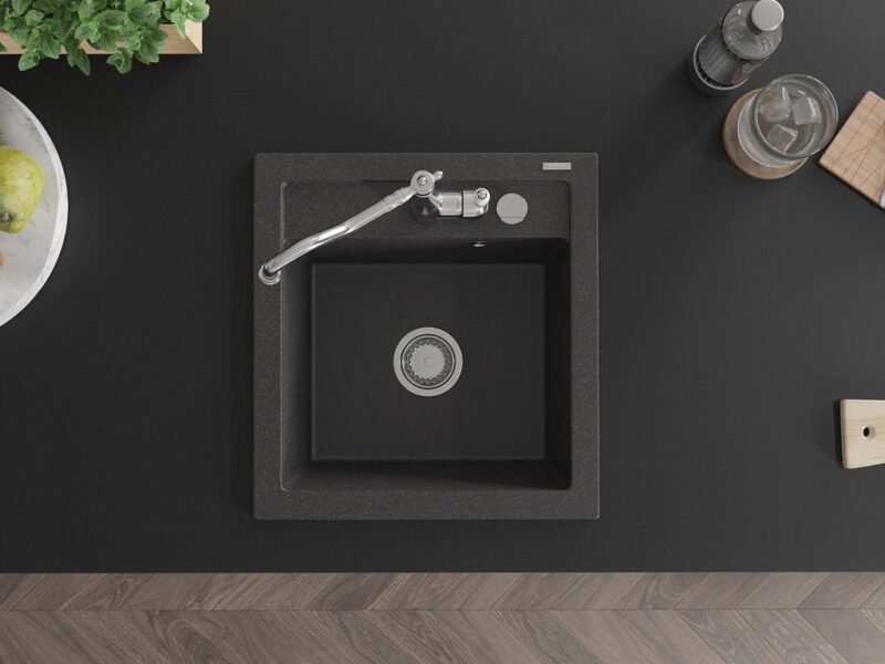 Technické dáta: drez: Rozmer: 520 x 490 x 210 mm Hĺbka komory: 200 mm Rozmery komory: 410×360 mm Priemer odtoku: ø90 mm Typ: 1-komorový Typ: Zapustené do pracovnej dosky Farba: Škvrnitá čierna Povrchová úprava sifónu: Chrome Materiál: žula (80% žulové kamenivo, 20% živice) Prepadový otvor: Áno Otvory: (batérie, automatické) 2 Vysoká odolnosť proti poškriabaniu a zmene farby Odolnosť proti tepelným šokom Ľahko čistiteľný povrch Jeden dodatočný vyfrézovaný otvor na samodierovanie ø35 kuchynská batéria: Materiál: mosadz Farba: Chrome Hlava: Keramická Prevzdušňovač: Áno Typ: Jedna páka Výška batérie: 290 mm Rozsah výtoku: 260 mm(GT) Ean: 5905315038241