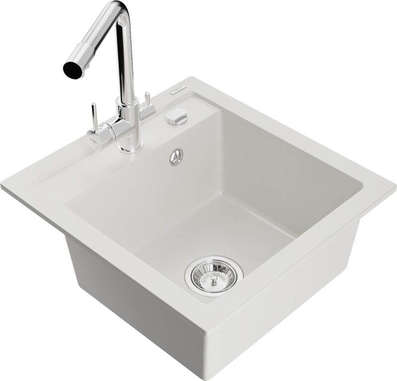 MEXEN/S MEXEN/S – Vito granitový drez 1-miska vrátane batérie Duero, biela 6503-20-671600-00