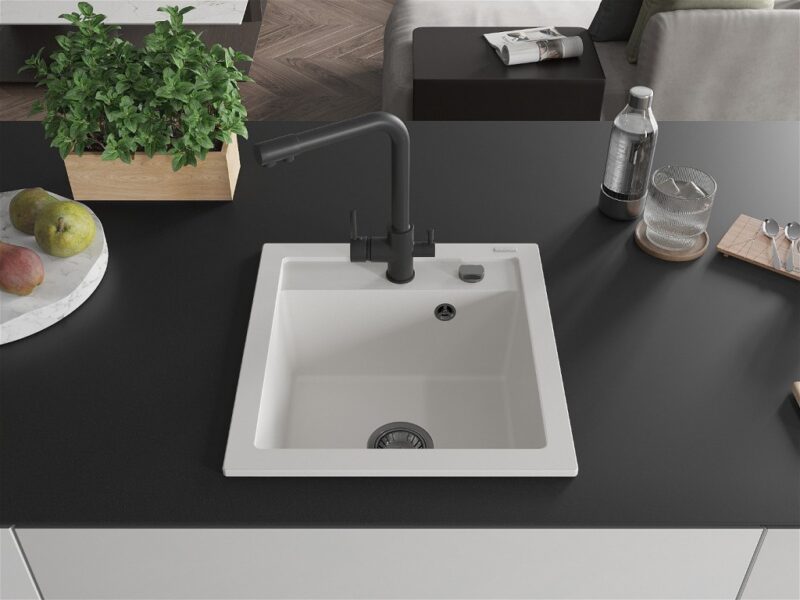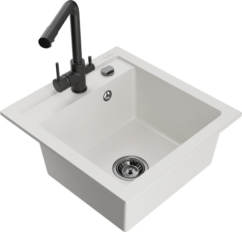 MEXEN/S MEXEN/S – Vito granitový drez 1-miska vrátane batérie Duero, biela 6503-20-671600-70