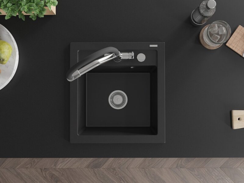 MEXEN/S MEXEN/S – Vito granitový drez 1-miska vrátane batérie Duo, čierna 6503-77-671701-07