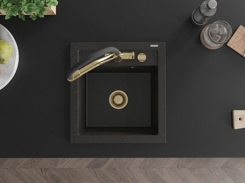 MEXEN/S MEXEN/S – Vito granitový drez 1-miska vrátane batérie Duo, čierna/zlatá metalik 6503-75-671701-57-G