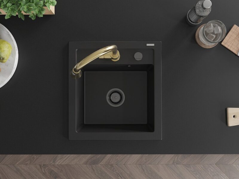 MEXEN/S MEXEN/S – Vito granitový drez 1-miska vrátane batérie Elia, čierna 6503-77-670101-50-B