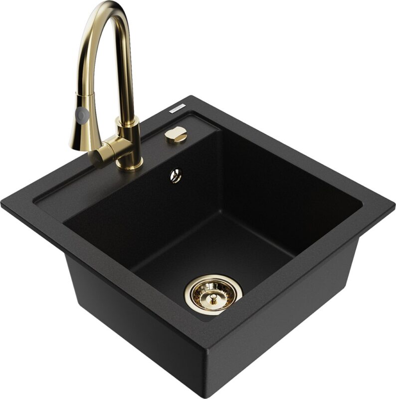 MEXEN/S MEXEN/S – Vito granitový drez 1-miska vrátane batérie Elia, čierna 6503-77-670101-50