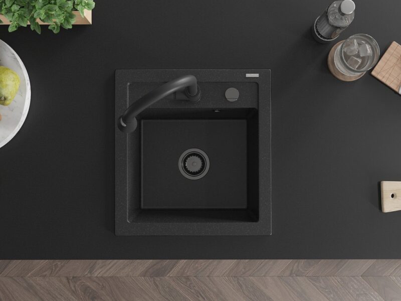 MEXEN/S MEXEN/S – Vito granitový drez 1-miska vrátane batérie Elia, čierna/strieborná metalík 6503-73-670101-70-B