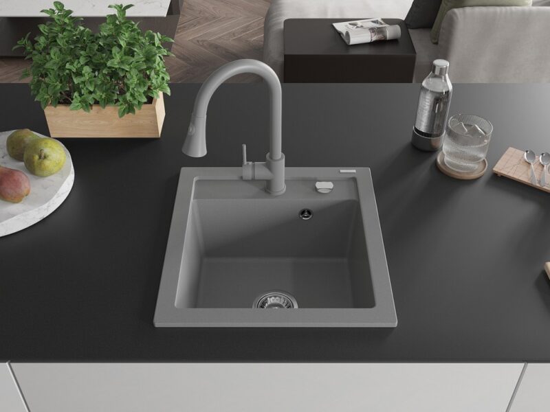 MEXEN/S MEXEN/S – Vito granitový drez 1-miska vrátane batérie Elia, šedá 6503-71-670101-71